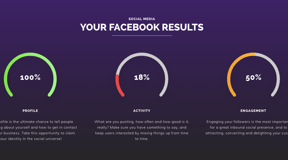 That’s somewhat true. However, a combined website and Facebook analysis still tells a lot about your digital presence when it comes to inbound. Covering every SEO aspect as well as the engagement and activity from your visitors and followers, the results will give you valuable insights into how you can attract and convert potential customers, as well delight your current ones.
